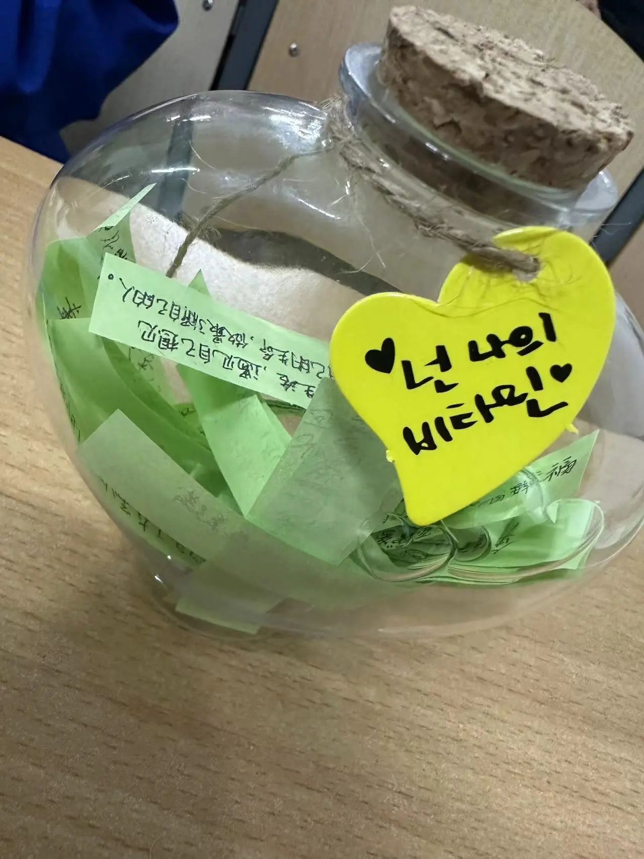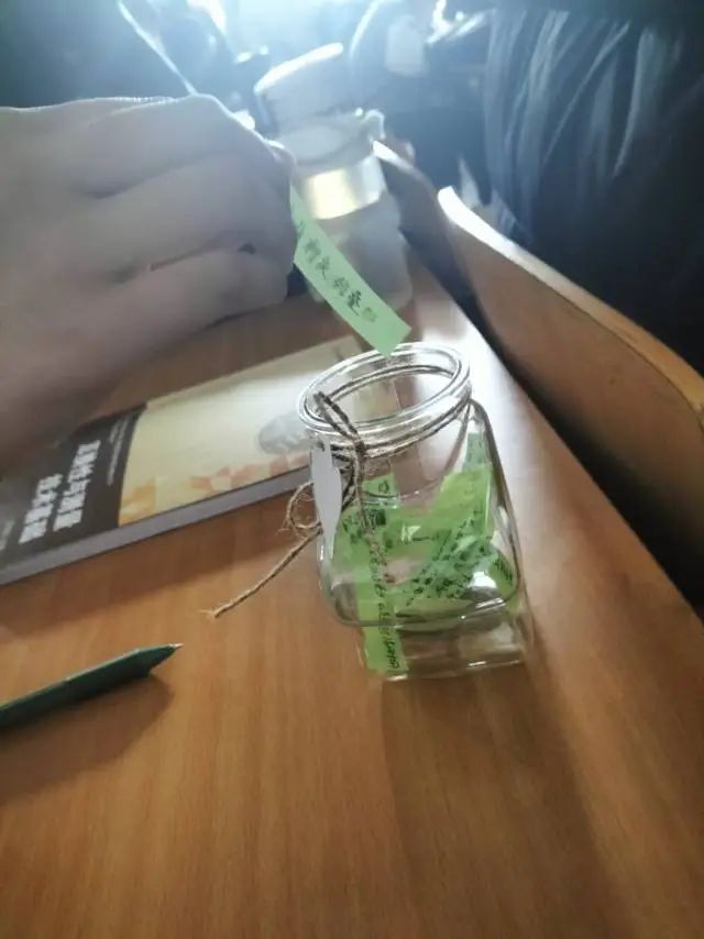 活动过程中,各班同学纷纷写下自己的心里话,并将一张张纸条塞进“漂流瓶”中。