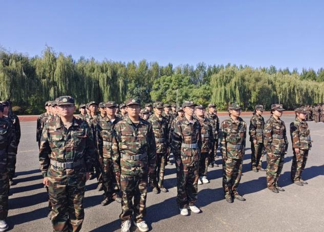 身着迷彩服的少年列队集结