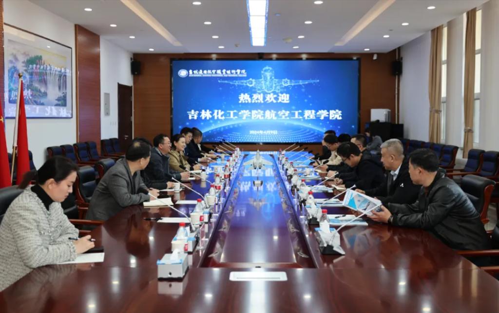 为加强院校交流,推进学院高质量发展,按照学校党委指示。4月9日,我院党委书记张国光、院长柳汀等一行7人,前往吉林通用航空职业技术学院(简称吉航职院)开展调研,吉航职院党委书记王洪福,党委副书记、副院长陈沫,副院长马辉、王大鹏、阚世江,教务处、招生就业处、党政办公室、实训管理处、航空机电学院等相关领导参加此次交流。