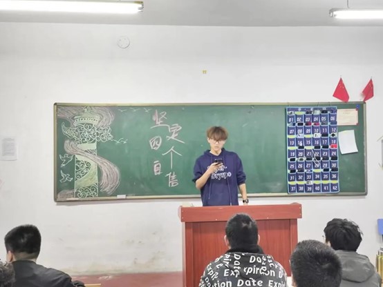 不忘初心,牢记使命。我们要始终坚持中国特色社会主义道路自信、理论自信、制度自信、文化自信,坚持党的基本路线不动摇,在活动中,同学们通过讨论,演讲等形式表达了坚定四个自信的决心!